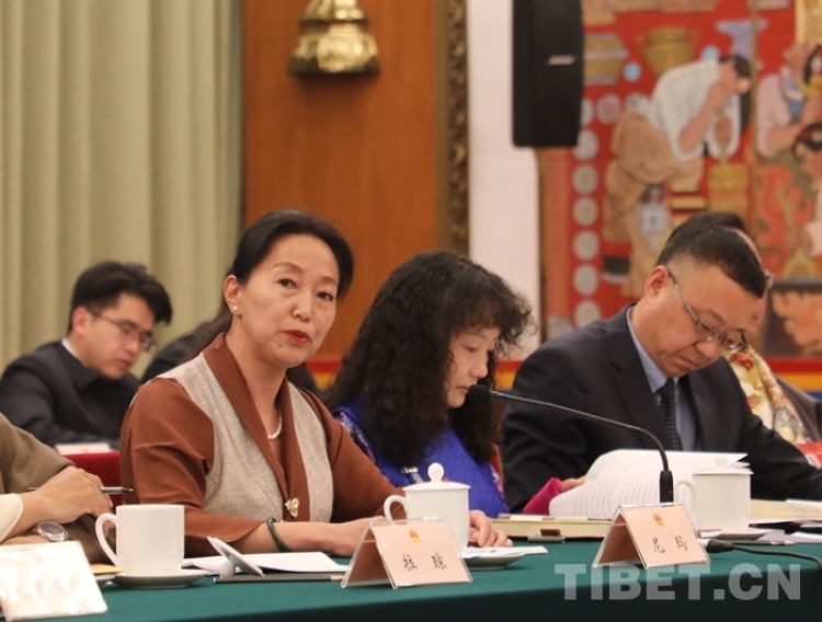 圖為尼瑪在十四屆全國(guó)人大二次會(huì)議西藏代表團(tuán)開(kāi)放團(tuán)組會(huì)議上發(fā)言