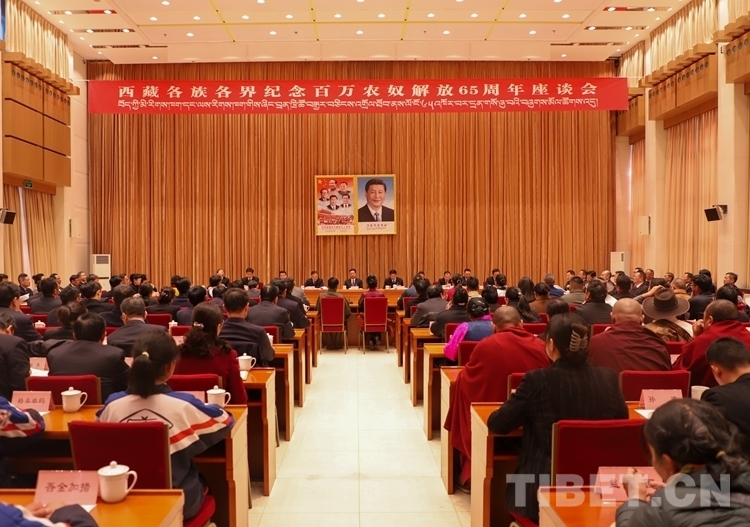 中國西藏網(wǎng)訊 3月28日,西藏各族各界紀(jì)念百萬農(nóng)奴解放65周年座談會(huì)在拉薩舉行。會(huì)上,翻身農(nóng)奴代表、愛國統(tǒng)戰(zhàn)人士及其后代代表、學(xué)生代表、黨外知識(shí)分子代表、宗教界代表等紛紛發(fā)言。