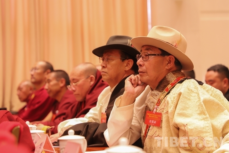 圖為宗教界代表七世熱振活佛熱振·索朗平措(右一)發(fā)言