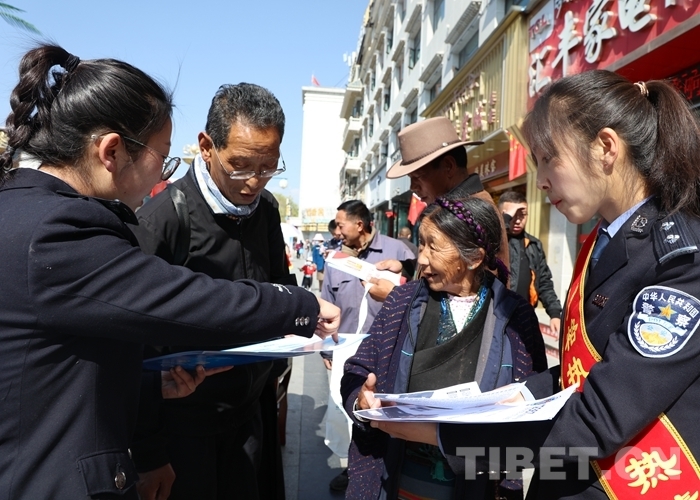 圖為西藏邊檢總站執(zhí)法調查支隊民警在街頭宣講