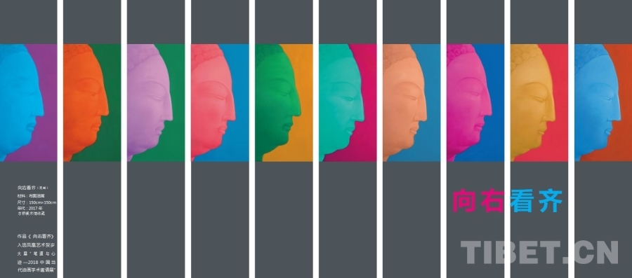 在創(chuàng)作過(guò)程中,陶宏嘗試將傳統(tǒng)佛像藝術(shù)與現(xiàn)代油畫(huà)技法相結(jié)合,融入現(xiàn)代審美元素和時(shí)代精神。“我希望用西方的觀念來(lái)表達(dá)東方精神,這就是互鑒與融合?!碧蘸甑挠彤?huà)作品《漢字雕塑》《覺(jué)者》、《向右看齊》等受到沃霍爾、克洛斯的影響,中外文化在時(shí)空的交融與碰撞中,即刻產(chǎn)生出新的觀念。借助現(xiàn)代藝術(shù)手法和觀念,陶宏嘗試對(duì)佛像藝術(shù)進(jìn)行解構(gòu)與重塑。通過(guò)打破傳統(tǒng)的創(chuàng)作界限,將佛像與周圍環(huán)境、人物以及情感進(jìn)行融合,創(chuàng)造出一種新的藝術(shù)表達(dá)方式,更加自由、開(kāi)放。