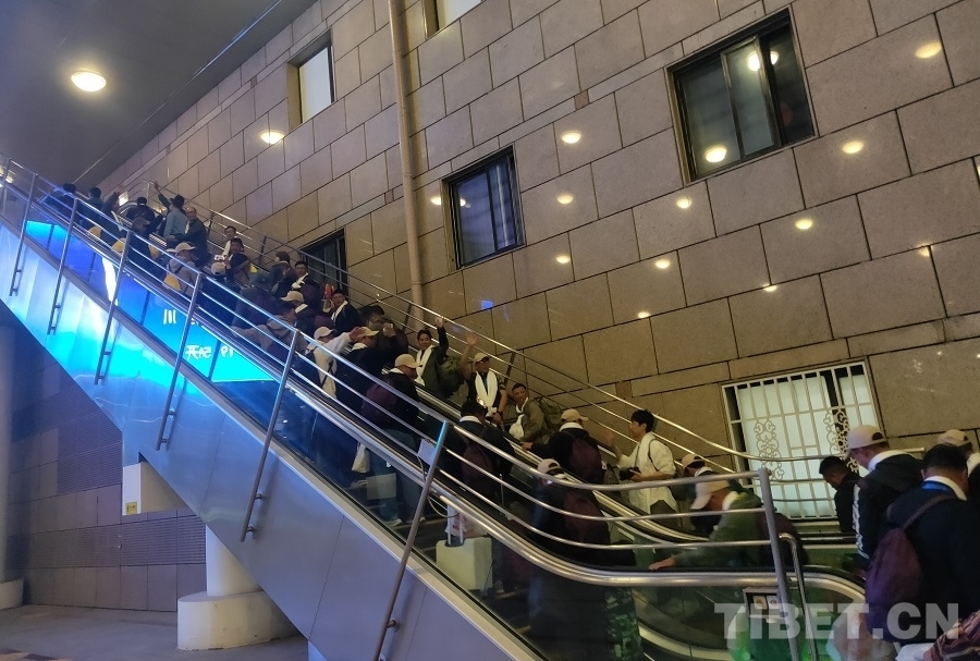 圖為考察學(xué)習(xí)團(tuán)成員檢票登車 攝影:周晴晴