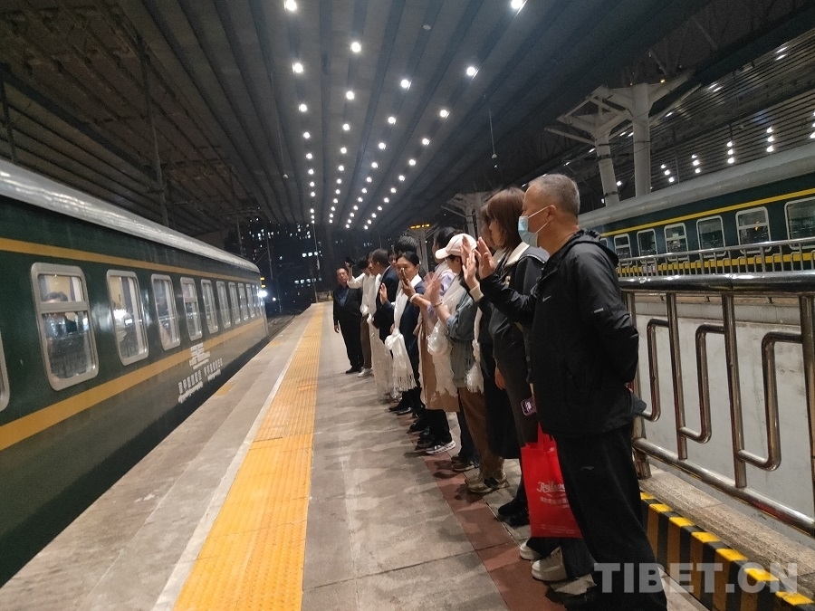 中國(guó)西藏網(wǎng)訊 4月27日晚,西藏野生動(dòng)物保護(hù)員進(jìn)京考察學(xué)習(xí)活動(dòng)圓滿結(jié)束,學(xué)員們?cè)诒本┪髡镜巧翔F路Z21次列車,開啟返回家鄉(xiāng)的路程。北京建藏援藏工作者協(xié)會(huì)、中國(guó)鐵道旅行社集團(tuán)有限公司、中國(guó)西藏網(wǎng)、中華網(wǎng)等參與此次學(xué)習(xí)考察活動(dòng)的組織單位到北京西站送別。