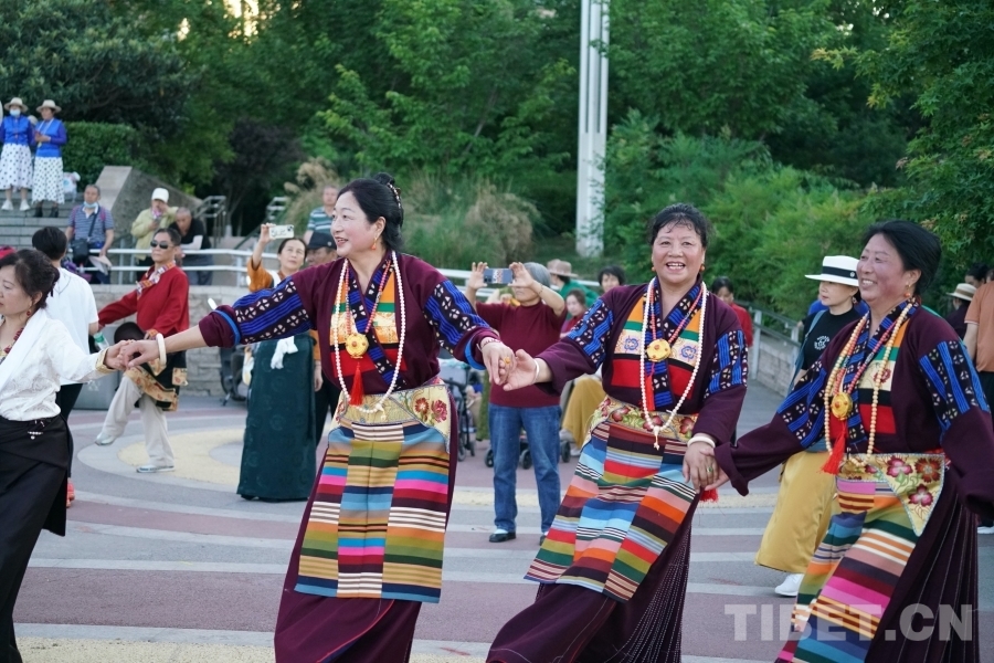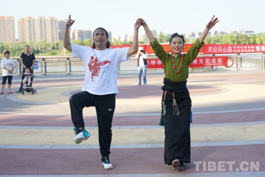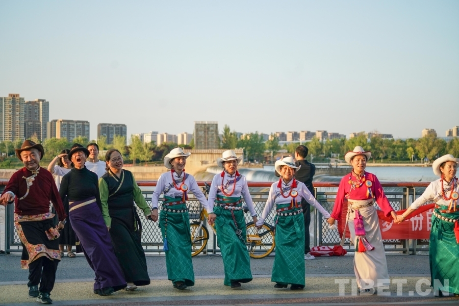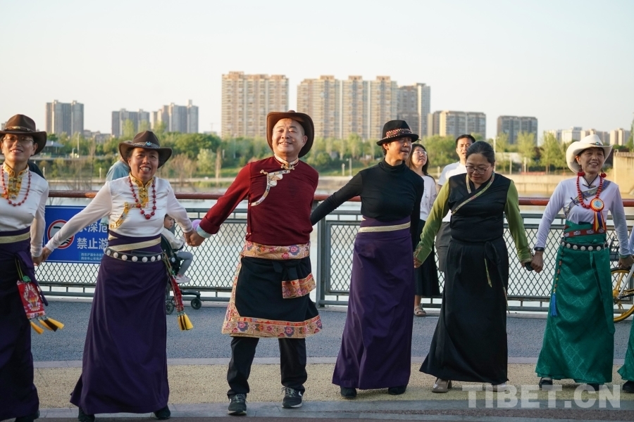 中國西藏網(wǎng)訊 近日,由同心圓傳統(tǒng)藏舞會堂舉辦的傳統(tǒng)藏舞推廣展演活動在西安浐灞半島舉辦,來自西藏、青海、四川等地的多位藏舞推廣傳承人、民間音樂創(chuàng)作人與藏舞愛好者齊聚西安,他們身著藏族傳統(tǒng)服飾,邊唱邊跳,《歡迎你們到來》《吉祥的哈達(dá)》《放牧歌》……一曲接著一曲,大家在歌聲和歡呼聲中感受著藏族文化的無限魅力!(中國西藏網(wǎng) 記者/呂靜 陳浩力)