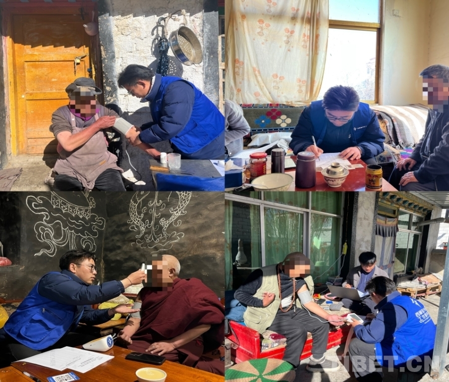圖為西藏星光社會工作服務(wù)中心社工為老人進(jìn)行血壓脈搏測試和基本信息登記 受訪者供圖