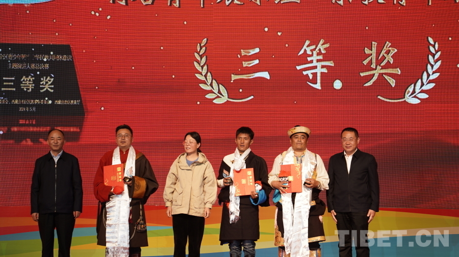 經(jīng)過兩天的激烈角逐,來自全區(qū)7市(地)、7所高校、74個縣區(qū)、850多個村居、320所中小學和85家區(qū)中直單位以及28座寺廟的104名優(yōu)秀選手完成了總決賽各項賽事,最終拉薩市實驗小學東城分校的徐瑞昆吉獲得小學組一等獎、山南市乃東區(qū)昌珠鎮(zhèn)洞嘎社區(qū)洛桑次仁獲得村居青年組一等獎、拉薩北京實驗中學的德慶邊宗獲得中學組一等獎、日喀則市江孜縣林布寺扎西次仁獲得宗教青年組一等獎、山南市東輝中學屈彥碩獲得青年組一等獎,此外還有11位選手獲得二等獎,18位選手獲得三等獎。