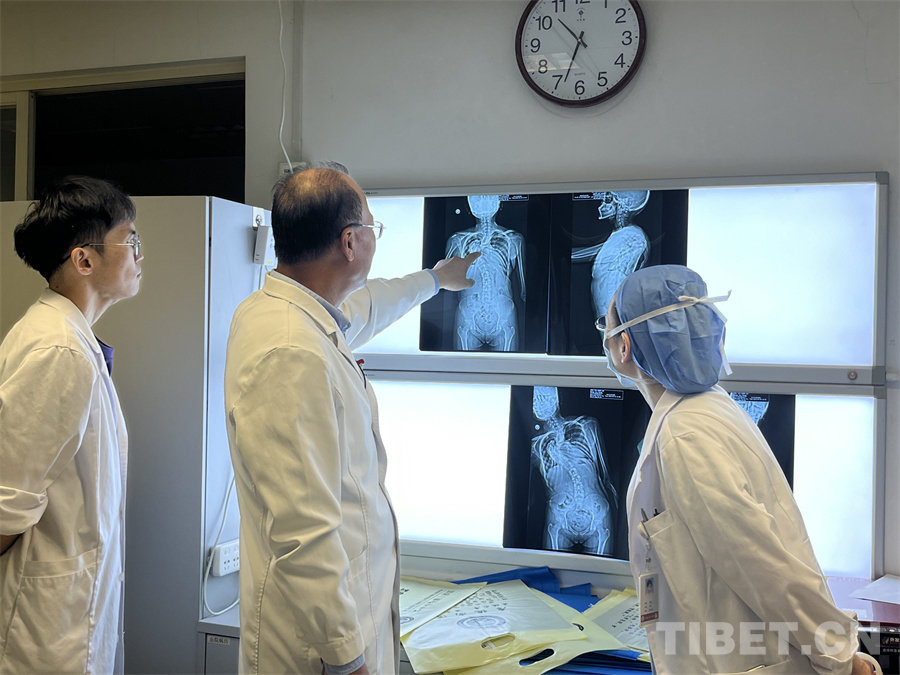 今年年初,李淳德完成了通過(guò)同心活動(dòng)篩選來(lái)京治療的4名重度脊柱畸形的藏族患者的救治。其中,23歲的達(dá)瓦扎西,脊柱畸形后凸加側(cè)彎畸形,畸形程度扭轉(zhuǎn)了180度,再加上后凸畸形壓迫到內(nèi)臟,給患者的正常生活帶來(lái)巨大不便。