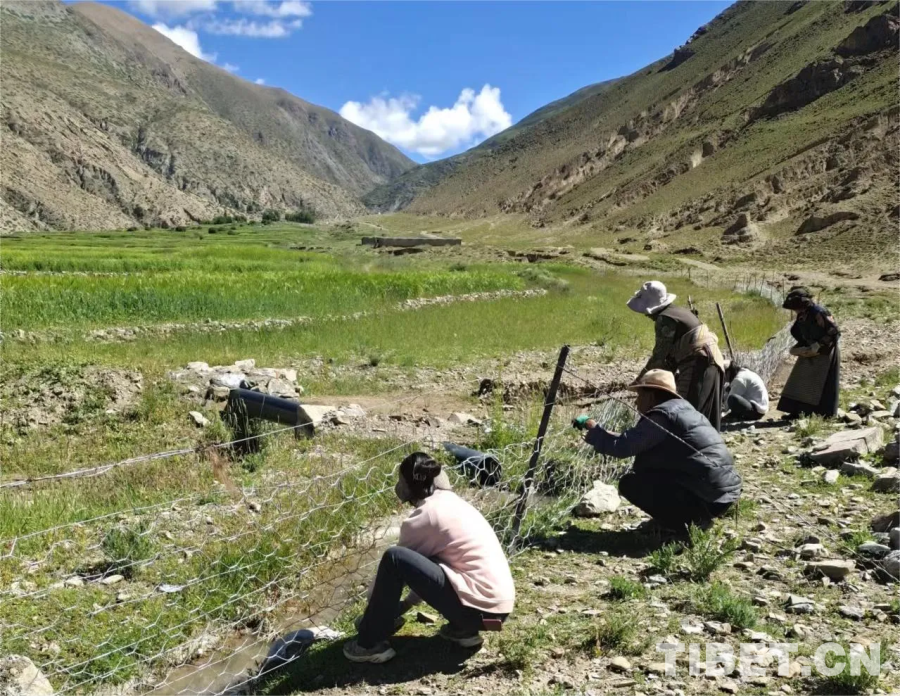 圖為駐村工作隊組織群眾加固當地草場防護網