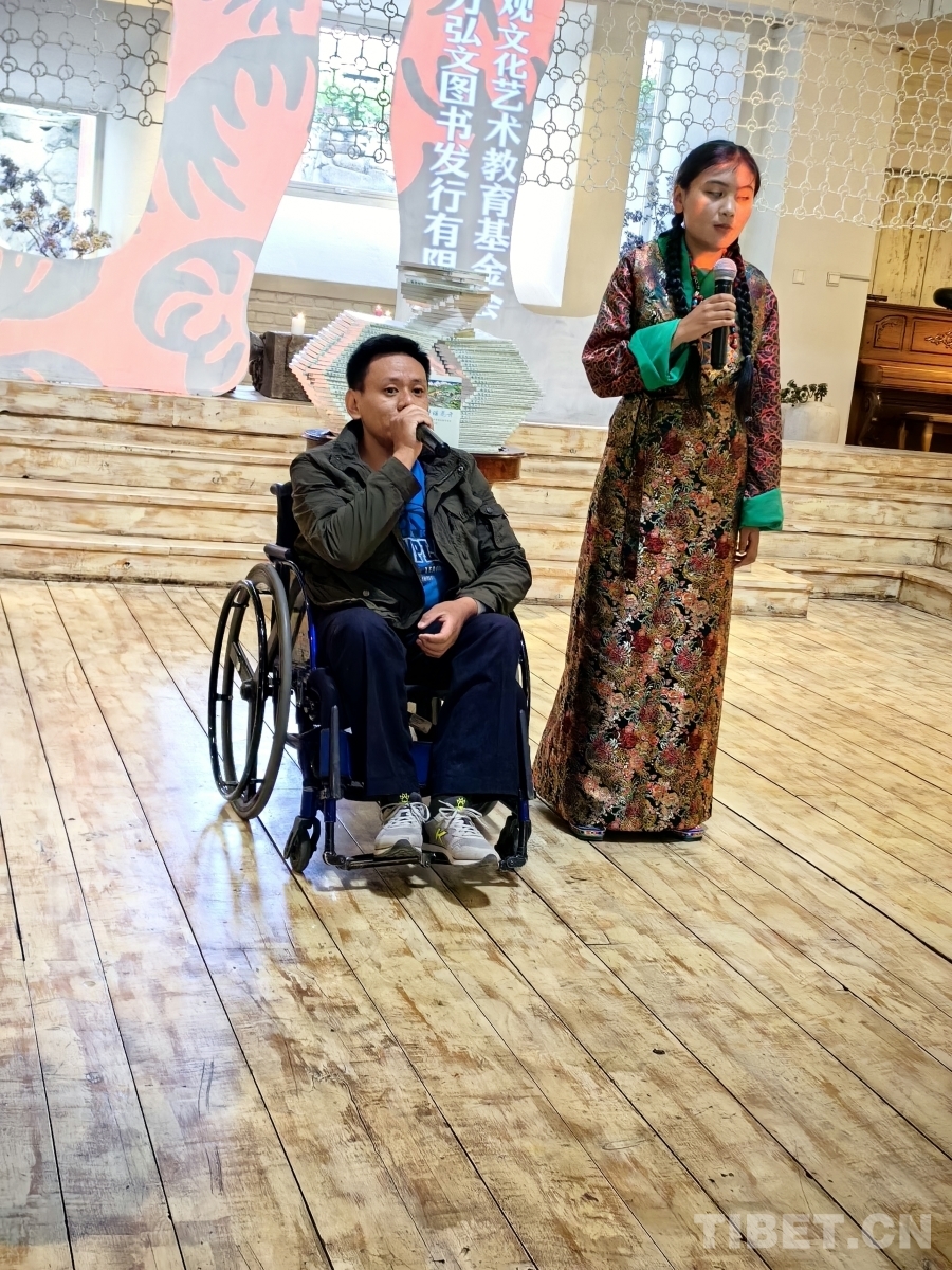 活動(dòng)現(xiàn)場,拉薩市特殊教育學(xué)校師生向西藏社會(huì)主義學(xué)院羅旦博士、中國藏學(xué)出版社代表、北京大方弘文圖書發(fā)行有限公司代表、西藏介觀文化藝術(shù)教育基金會(huì)代表敬獻(xiàn)了哈達(dá),贈(zèng)送了錦旗、畫作,對他們在新書出版中給予的支持和幫助表達(dá)了誠摯的謝意。隨后,拉薩市特殊教育學(xué)校學(xué)生為現(xiàn)場來賓表演了二重唱《愛在陽光下》、詩歌朗誦《光明》、舞蹈《舞動(dòng)大地》等精彩的節(jié)目,將活動(dòng)推向高潮,現(xiàn)場觀眾紛紛鼓掌叫好,氣氛十分感人。