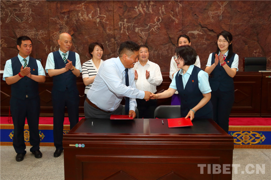 中國(guó)西藏網(wǎng)訊 6月6日,中國(guó)藏學(xué)研究中心西藏文化博物館與中國(guó)郵政集團(tuán)有限公司北京市朝陽(yáng)區(qū)分公司聯(lián)合建立“北京西藏文化郵空間”合作簽約儀式在西藏文化博物館(下文簡(jiǎn)稱“博物館”)舉行。中國(guó)藏學(xué)研究中心(下文簡(jiǎn)稱“藏研中心”)副總干事李德成、中國(guó)郵政集團(tuán)有限公司北京市朝陽(yáng)區(qū)分公司總經(jīng)理梁洪濤、藏研中心相關(guān)部門負(fù)責(zé)人出席活動(dòng)。