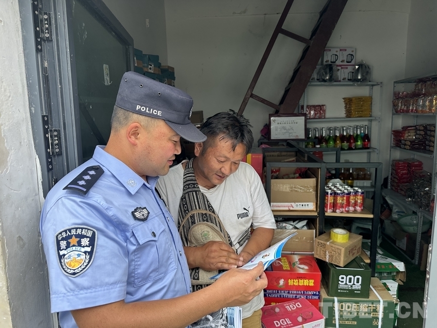 圖為聶拉木出入境邊防檢查站民警向口岸個(gè)體戶宣講禁毒知識 攝影:軒紅偉