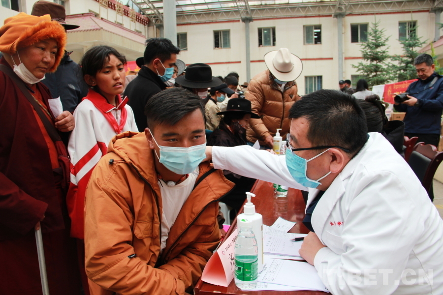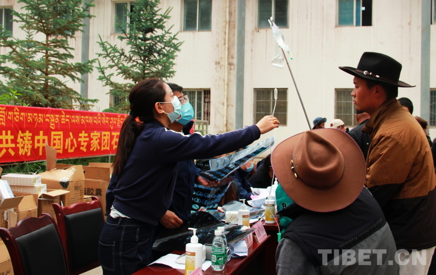 由于石渠縣海拔較高,參加義診的醫(yī)療專家們普遍發(fā)生頭暈、心悸等高原反應(yīng),有的血氧濃度甚至不到70%。在前往義診現(xiàn)場的車上還吸著氧的他們,見到這么多群眾排隊(duì)候診,顧不上身體不適,迅速投入到了診療工作中。