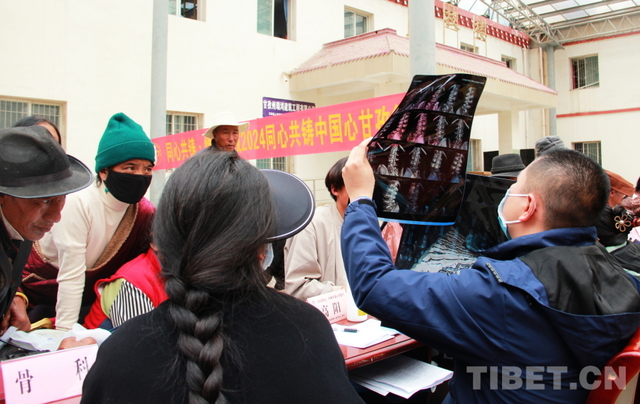 圖為2024“同心·共鑄中國心”甘孜行大型公益活動(dòng)石渠縣義診現(xiàn)場,中國人民解放軍總醫(yī)院第一醫(yī)學(xué)中心骨科副主任醫(yī)師高陽正在查看患者帶來的片子 攝影:劉莉