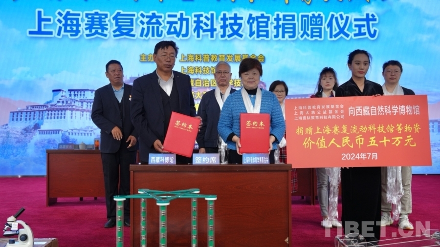 中國西藏網(wǎng)訊 7月10日,上??破战逃l(fā)展基金會(huì)科普物資捐贈(zèng)儀式在西藏自然科學(xué)博物館舉行。