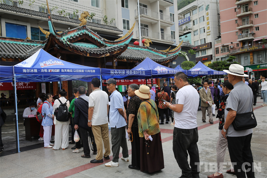 圖為瀘定橋廣場義診點,專家正在為患者量血壓 攝影:登真巴珍