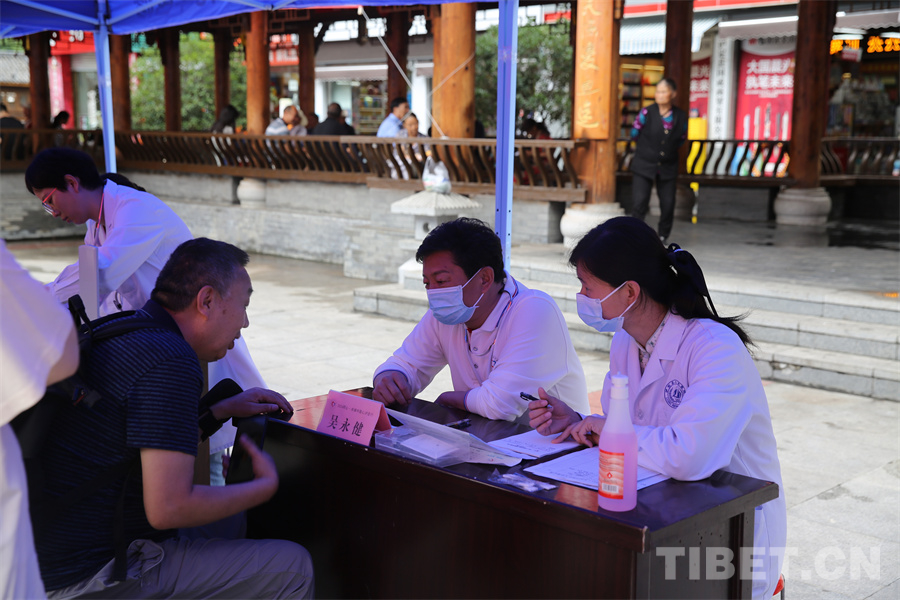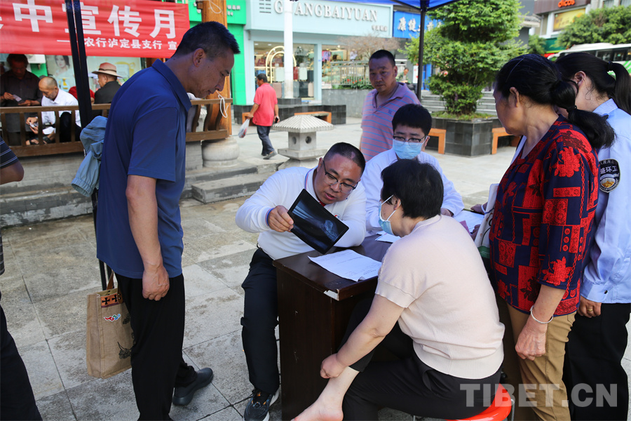 圖為瀘定橋廣場義診點,骨科專家正在為患者診治 攝影:登真巴珍