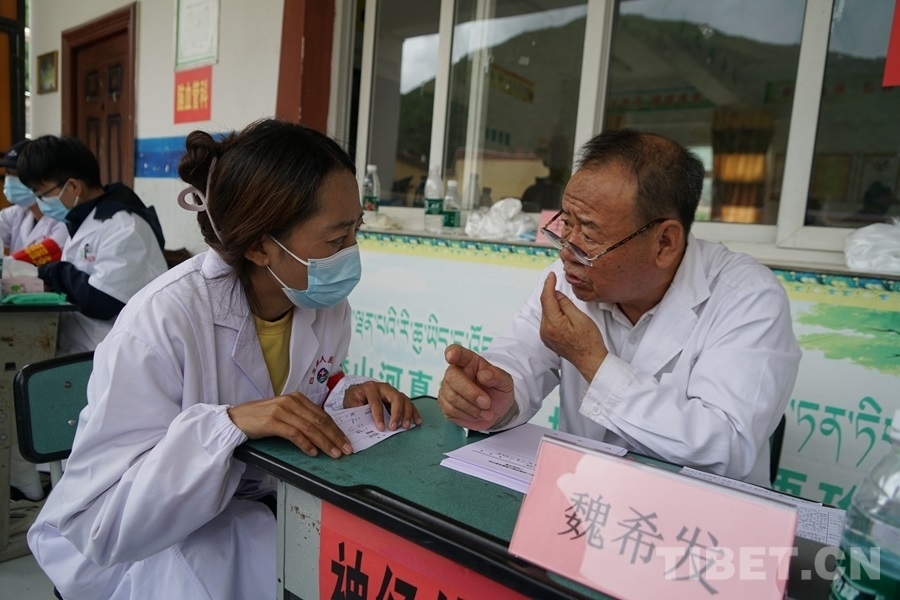 在協(xié)助義診過(guò)程中,四郎曲珍聽(tīng)到很多老百姓表示醫(yī)生們不遠(yuǎn)千里從北京過(guò)來(lái),不僅辛苦為大家問(wèn)診,還免費(fèi)送藥,他們心里充滿了欣慰和感激??吹结t(yī)療專(zhuān)家們的盡心竭力和百姓們滿滿的獲得感,她對(duì)于這次活動(dòng)的意義,也有很深的感受?!拔矣X(jué)得同心這樣的活動(dòng)非常好。我們當(dāng)?shù)蒯t(yī)療條件有限,又因?yàn)榻煌ú荒敲捶奖?,老百姓看病很困難。有了這次活動(dòng),大家不需要大老遠(yuǎn)去找專(zhuān)家,也減輕了路上交通食宿等經(jīng)濟(jì)負(fù)擔(dān)。不僅如此,老師還可以一對(duì)一地指導(dǎo)我們當(dāng)?shù)氐尼t(yī)護(hù)人員,幫助我們提升醫(yī)療技能,以后可以更好地為老百姓服務(wù)?!?nbsp;