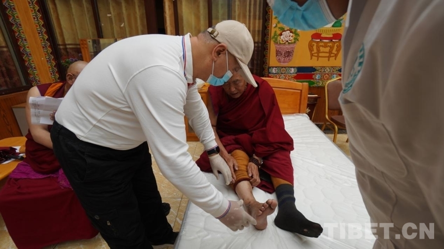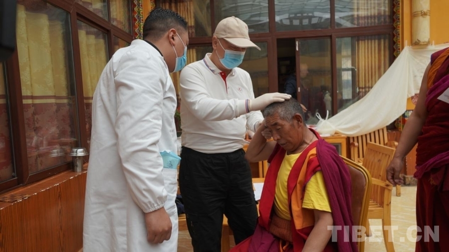 中國西藏網(wǎng)訊 7月10日,“同心·共鑄中國心”公益醫(yī)療團(tuán)隊(duì)走進(jìn)四川省甘孜藏族自治州理塘縣長青春科爾寺(又名理塘寺),為寺內(nèi)僧人義診?,F(xiàn)場義診的專家們平均年齡都在四十歲以上,他們都是一邊與高原反應(yīng)抗衡一邊堅(jiān)持義診,秉承著“缺氧不能缺精神”的態(tài)度堅(jiān)持工作。