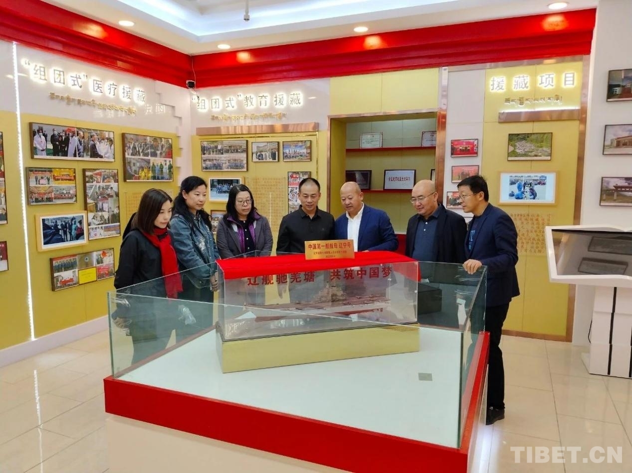 圖為專家團(tuán)參觀遼寧省援藏數(shù)字博物館