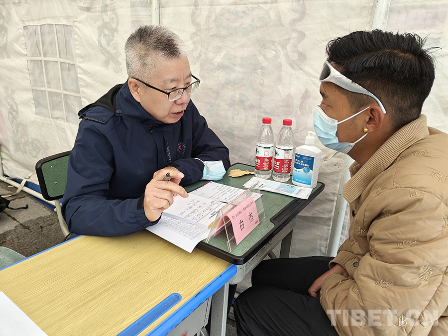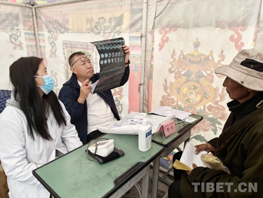 圖為中醫(yī)科副主任醫(yī)師白杰在塔公鎮(zhèn)為當地居民義診 供圖:北京同心共鑄公益基金會