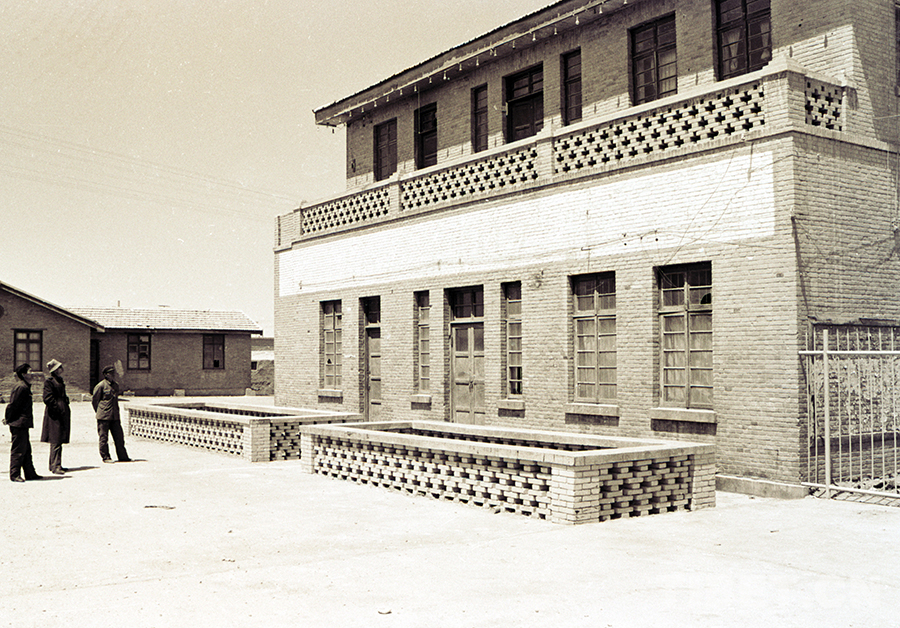 幾位游客在觀看慕生忠將軍曾生活、工作過的樓房。這座將軍樓也是格爾木市的第一座樓房(唐召明1987年攝)
