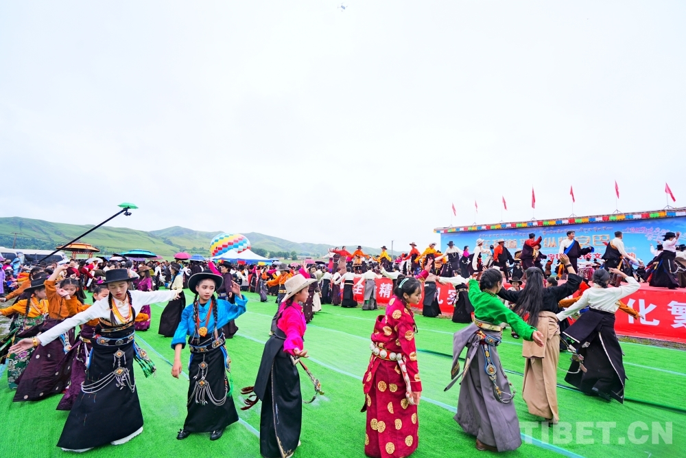 一場傳統(tǒng)的祈福儀式拉開活動的序幕。身著盛裝的騎手擎著彩旗,策馬轉繞祈福的煨桑臺,共同祝愿祖國繁榮昌盛,祝福家鄉(xiāng)安定祥和,各族人民團結進步。少兒服飾隊和300名當地群眾手捧哈達悉數亮相在舞臺前,向四方來客表示誠摯歡迎?!百愸R”“吉祥大鍋莊”等民族歌舞精彩上演,游客也加入其中跳起團結鍋莊,盡享盛夏安巴之樂。
