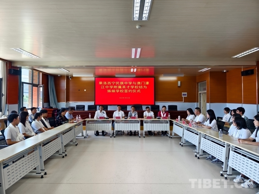 果洛西寧民族中學(xué)與澳門濠江中學(xué)附屬英才中學(xué)結(jié)為姊妹學(xué)校簽約儀式也在此次活動中舉行,澳門濠江中學(xué)附屬英才學(xué)校的師生與果洛西寧民族中學(xué)的師生代表進(jìn)行了深度的交流。此舉將加強(qiáng)兩校之間的互學(xué)互鑒,深化了解和友誼,促進(jìn)優(yōu)質(zhì)教育資源共享,不斷推動基礎(chǔ)教育創(chuàng)新發(fā)展。