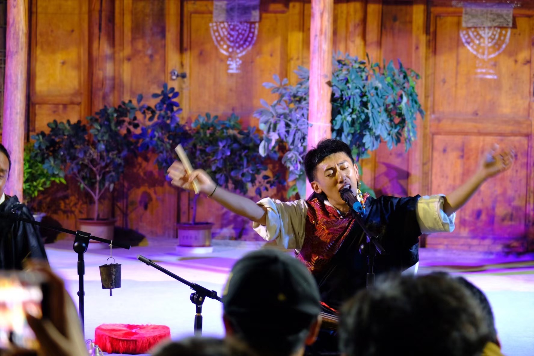 開(kāi)幕儀式當(dāng)晚,為期三天的古院鄉(xiāng)村音樂(lè)周邀請(qǐng)到了三組耕耘在中華優(yōu)秀傳統(tǒng)音樂(lè)領(lǐng)域的青年藝術(shù)家。古院落作為獨(dú)特的舞臺(tái)空間,迎接了一場(chǎng)場(chǎng)別開(kāi)生面的音樂(lè)聚會(huì)。
