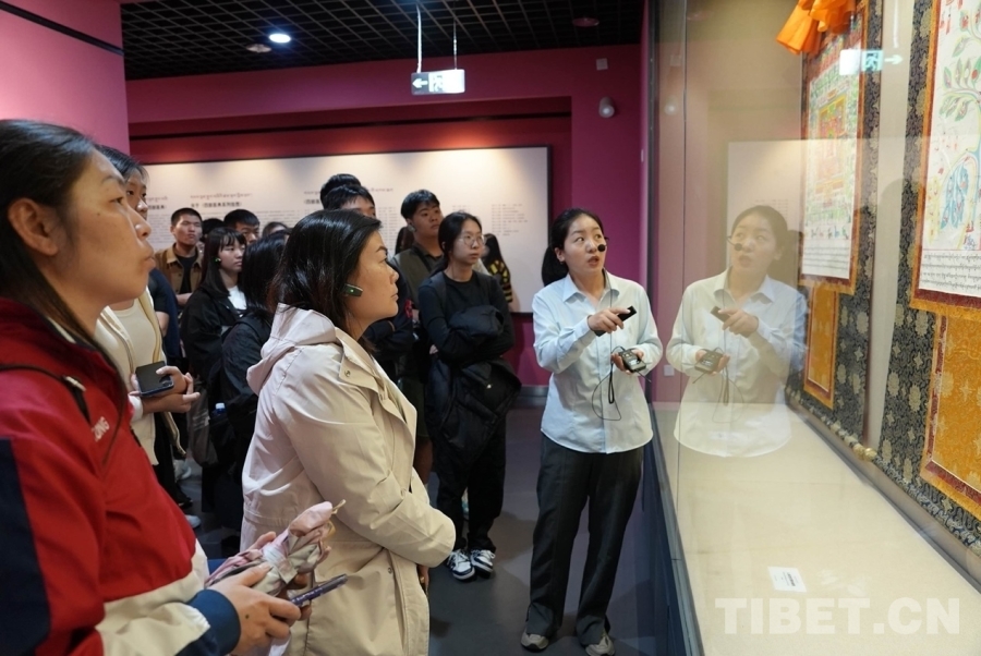 在熱貢藝術博物館中,豐富的藏品如同歷史的畫卷,一一展現(xiàn)在大家眼前。從古老的唐卡到精美的木雕,再到獨具特色的堆繡和栩栩如生的泥塑,專業(yè)的講解員細致入微地介紹著每一件展品的藝術特點、文化價值,使參與者們沉浸在熱貢藝術的魅力之中。