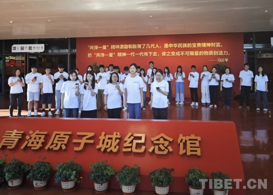 隨后,青少年們走進了位于青海省海北藏族自治州海晏縣西海鎮(zhèn)金銀灘草原的原子城紀念館,拉開了一場觸動心靈的研學之旅。紀念館里,一張張珍貴的歷史照片、一件件承載歲月滄桑的實物展品,以及講解員充滿真情實感的介紹,將研學營的師生們帶回到那個激情燃燒的年代,讓他們了解了我國在國防科技領域的輝煌成就和艱苦卓絕的奮斗歷程。師生們?nèi)褙炞?,認真聆聽,神情中滿是崇敬。