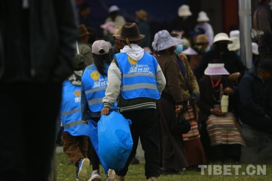 環(huán)保小衛(wèi)士們不怕臟不怕累,身著藍(lán)色小馬甲,手持清掃工具和垃圾袋“地毯式搜撿”,如同“藍(lán)精靈”在人群中穿梭,用實(shí)際行動(dòng)感染著現(xiàn)場(chǎng)活動(dòng)的所有參與者。在大家的共同努力下,經(jīng)過(guò)三個(gè)多小時(shí)的辛勤勞動(dòng),望果節(jié)現(xiàn)場(chǎng)的衛(wèi)生得到了明顯的改善。