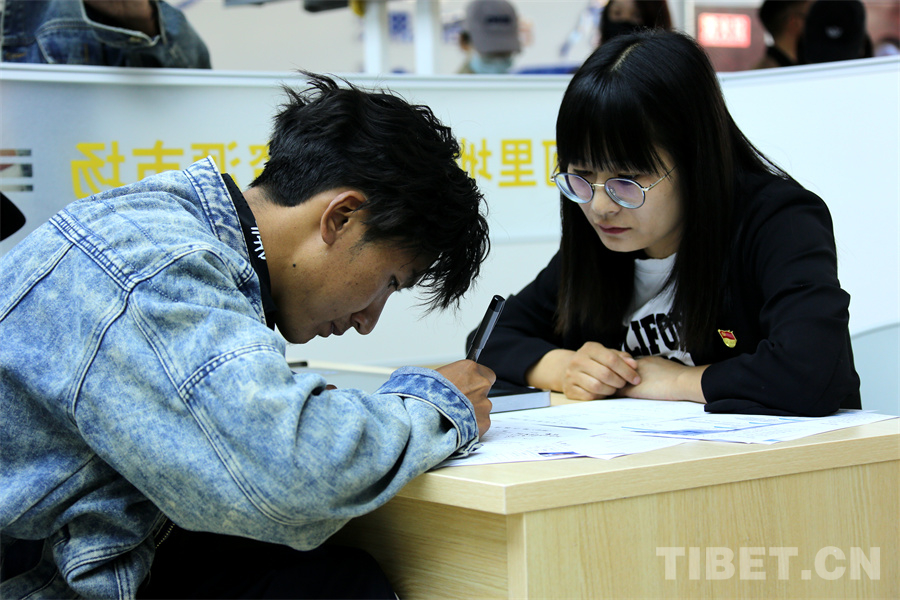 招聘會(huì)現(xiàn)場(chǎng)設(shè)有咨詢(xún)區(qū)、面試區(qū)及休息區(qū),提供一站式求職服務(wù)。會(huì)場(chǎng)內(nèi)的一塊大屏幕吸引了很多求職者的目光,工作人員介紹道:“屏幕滾動(dòng)展示陜西省、河北省的援藏崗位。我們是鼓勵(lì)區(qū)外就業(yè)的,有補(bǔ)貼政策。為爭(zhēng)取這些崗位,我們積極主動(dòng)與河北省、陜西省對(duì)接,通過(guò)回訪(fǎng)兩省三企等方式降低崗位招入要求,進(jìn)一步增加崗位匹配度。”