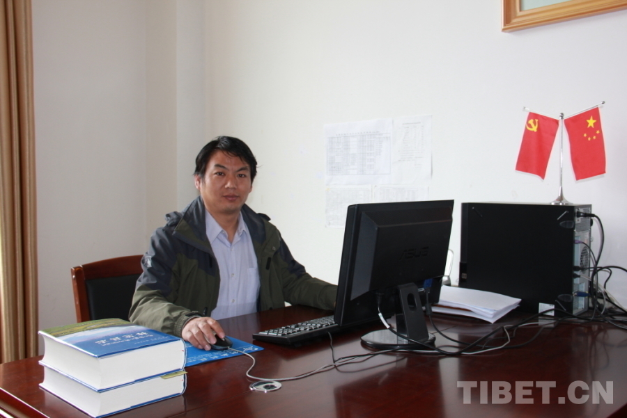 圖為李彥明在西藏農(nóng)牧學(xué)院辦公室