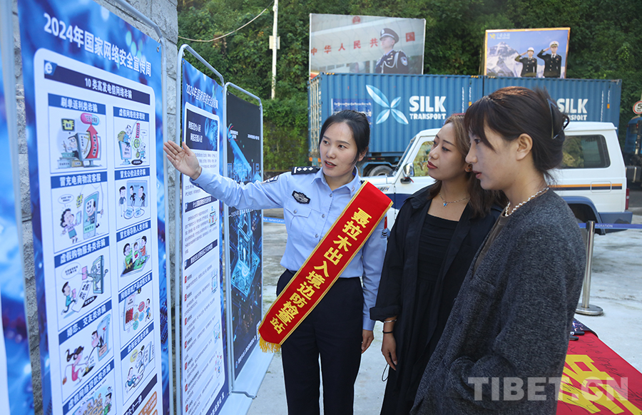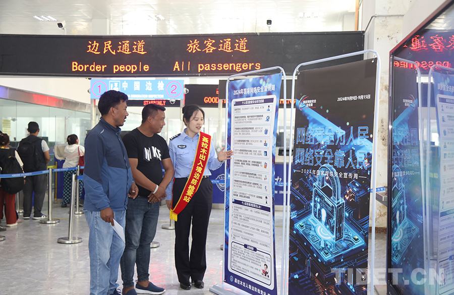 圖為聶拉木出入境邊防檢查站移民管理警察開(kāi)展網(wǎng)絡(luò)安全周集中宣傳活動(dòng) 攝影:高榮元