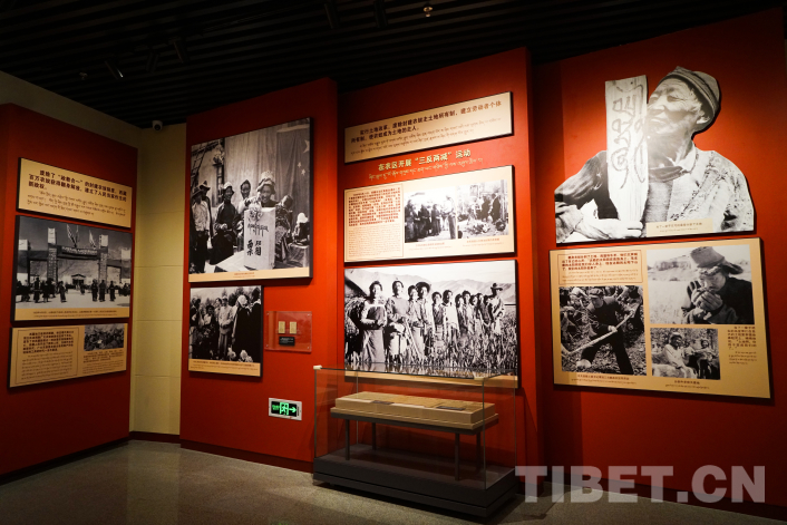“西藏百萬農(nóng)奴解放紀(jì)念館日喀則分館”面積1165平方米,在西藏百萬農(nóng)奴解放紀(jì)念館展陳腳本的基礎(chǔ)上,適當(dāng)融入了發(fā)生在日喀則大地上的民主改革等重大歷史事件,特別是融入了黨的十八大以來日喀則發(fā)展成就等內(nèi)容。展廳采用幻影成像技術(shù),生動(dòng)再現(xiàn)“桑登分得土地”“桑登乞討圖”等新舊對比場景,全面集中反映了中國共產(chǎn)黨帶領(lǐng)西藏各族人民進(jìn)行偉大民主改革,百萬農(nóng)奴翻身獲得解放的偉大歷史變革。