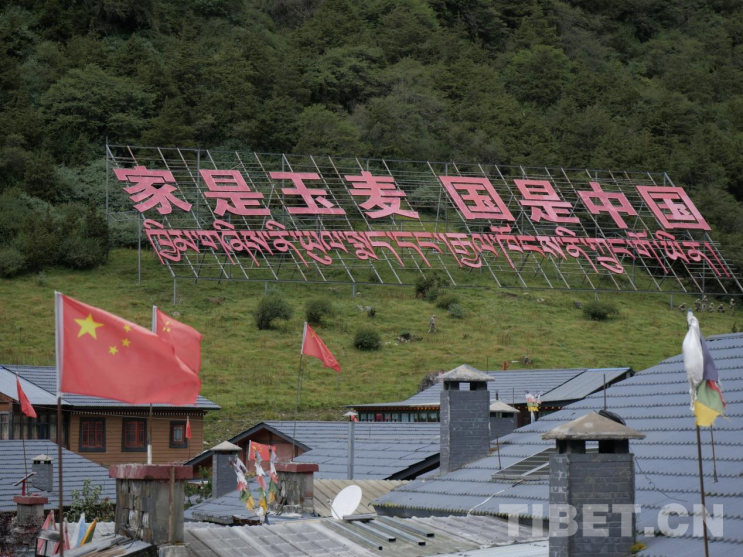 圖為玉麥鄉(xiāng)“家是玉麥,國(guó)是中國(guó)”標(biāo)語 攝影:文翔宇