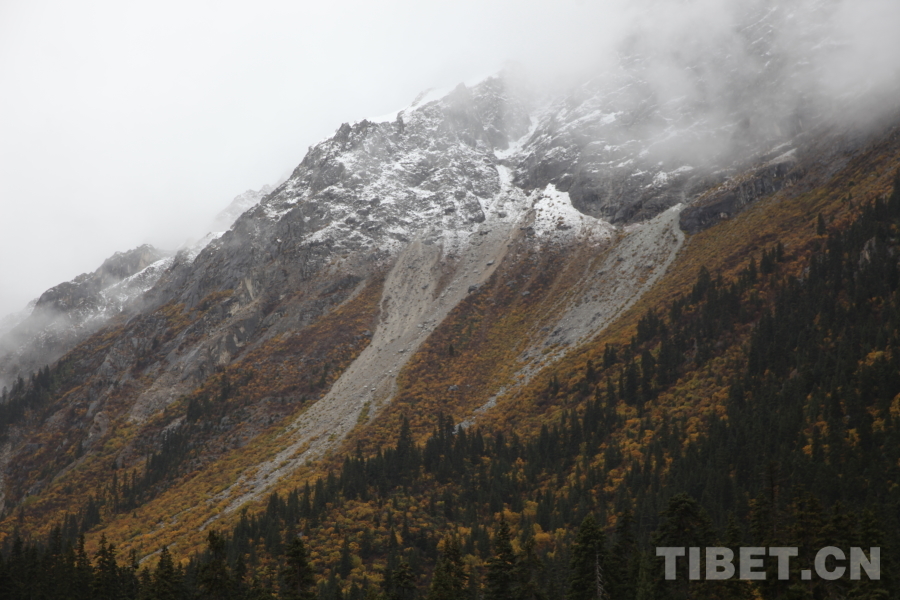 秋日是靜謐的,是金燦燦的,也是火紅的。在西藏自治區(qū)昌都市八宿縣看見的秋色,不僅有山頂?shù)陌籽介g黃綠相間的林海,還有半山腰若隱若現(xiàn)的云霧。