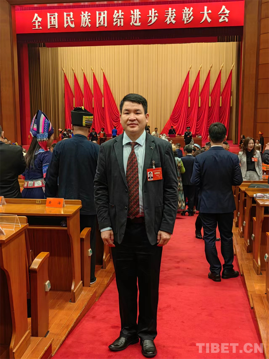 圖為丁玉珂以“全國民族團(tuán)結(jié)進(jìn)步模范個人”身份出席全國民族團(tuán)結(jié)進(jìn)步表彰大會 受訪者供圖