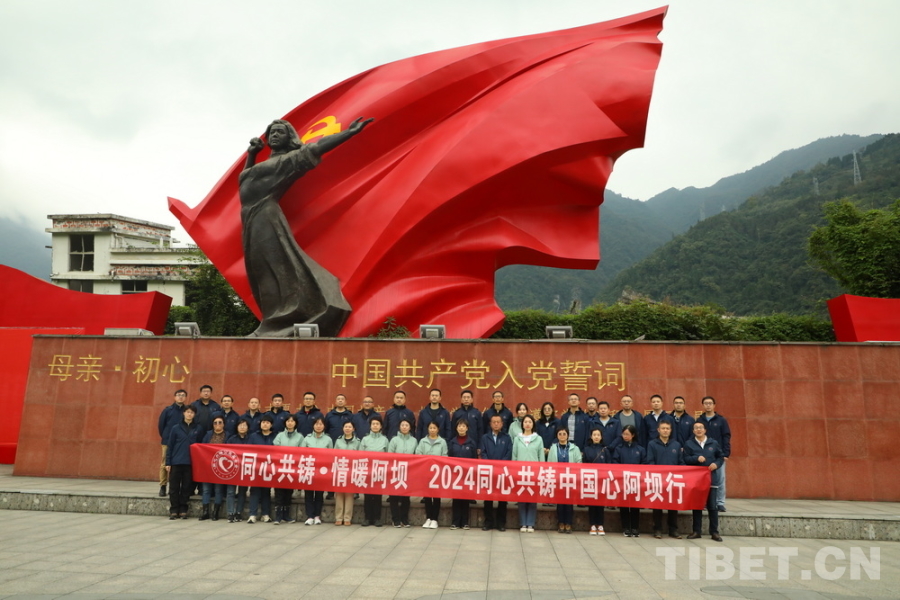圖為“同心共鑄 情暖阿壩——‘同心·共鑄中國心’2024阿壩行”活動(dòng)赴四川省阿壩藏族羌族自治州阿壩縣的醫(yī)務(wù)志愿者們?cè)阢氪ㄓ承阏鹬羞z址開展相關(guān)紀(jì)念活動(dòng) 攝影:莫干措