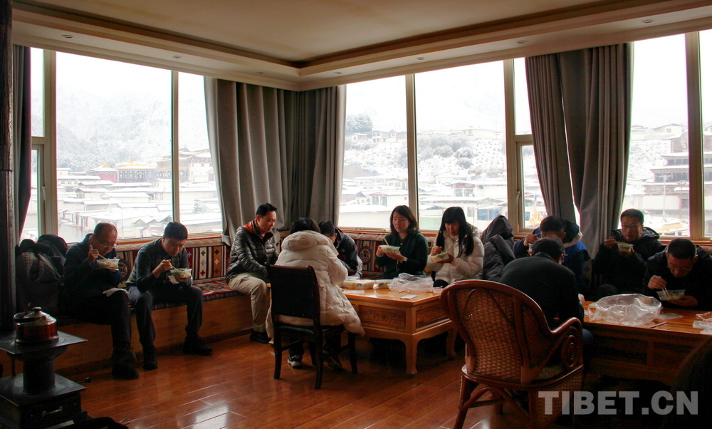 直到接診完最后一名患者,醫(yī)務志愿者們才進入室內(nèi)匆匆吃盒飯。大家說,趕緊吃完,下午還能多看幾個病人。(中國西藏網(wǎng) 記者/劉莉)