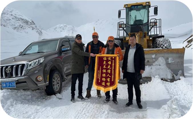 “能不能幫幫忙,讓我們過一輛車子就行,我老婆闌尾炎犯了,疼得要命,我想趕緊送她去縣醫(yī)院”。這是我們保通過程中另一個故事。2022年5月的一個夜晚,正當(dāng)我們完成果扎拉山頂?shù)谋Mㄈ蝿?wù),結(jié)束工作準(zhǔn)備返回保通點時,一位村民攔住了我們的去路。當(dāng)時已是晚上8點多鐘,又趕上山頂突發(fā)約3500立方米的大型雪崩,連軸轉(zhuǎn)一天的機(jī)械,油也用得差不多了。聽到村民說車?yán)镉胁∪?,我與其他同事顧不上吃晚飯,更顧不上休息,商量一致后,決定一起連夜推通雪崩。當(dāng)時已是深夜,室外零下6、7度,能見度不足5米,即便是開著車燈,在一大片白茫茫的雪地里,也依然看不太清楚前面的道路。推到一半,車子突然沒油了,其他保通人員趕忙翻過雪崩,去另外一臺機(jī)械里倒油出來。然后再翻過雪崩,添上柴油繼續(xù)推雪。當(dāng)最后一鏟雪被推完,已是凌晨兩點多。為確保車?yán)锊∪税踩律?,得到及時救治,我在前面開路,一直將其送至山腳下,才放心返回保通點就餐休息。