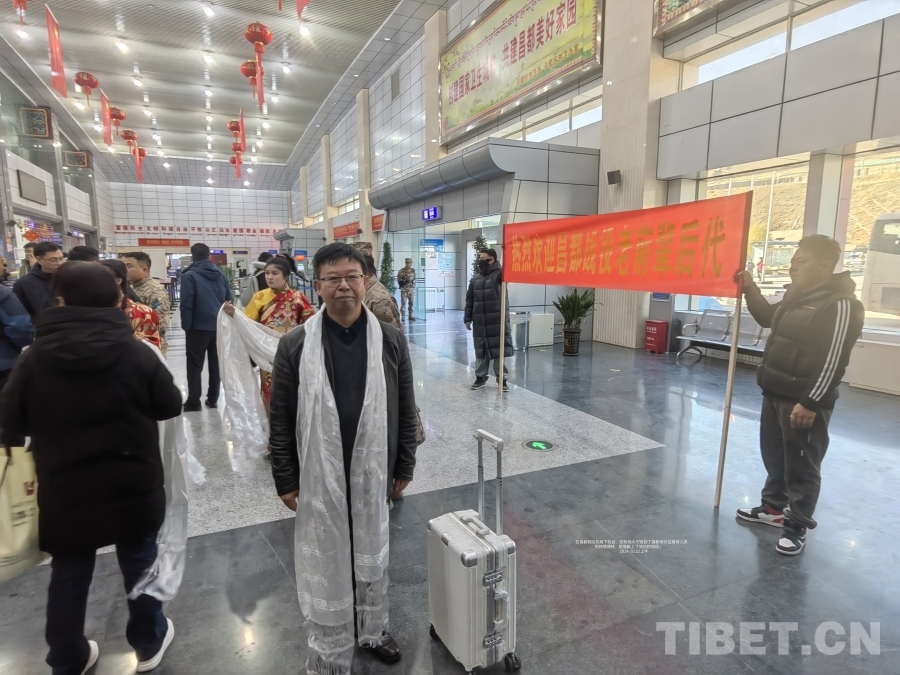 我懷著無比激動的心情走進機場大廳,看見對面不遠處昌都軍分區(qū)的工作人員,身后豎立著一條橫幅寫著:“熱烈歡迎昌都戰(zhàn)役老前輩后代”,場面熱烈而隆重。