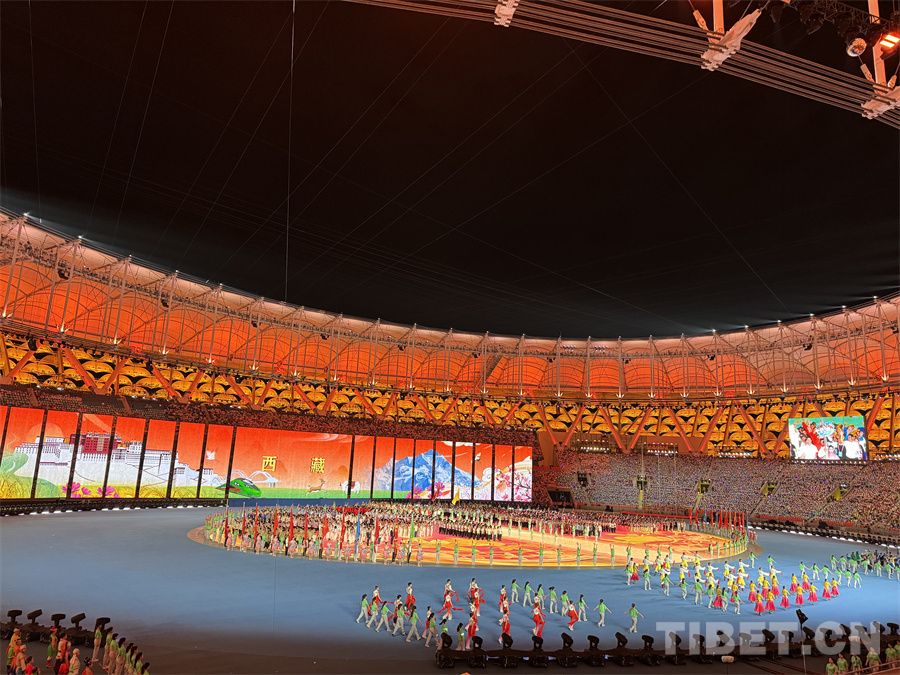 圖為西藏自治區(qū)代表團(tuán)在開幕式上入場(chǎng) 攝影:蘇洋