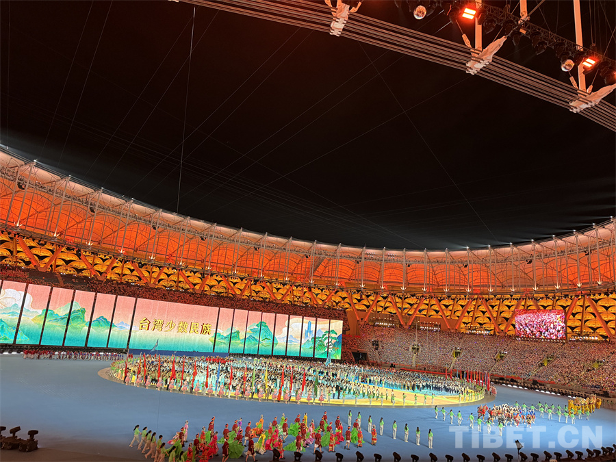 圖為臺(tái)灣少數(shù)民族代表團(tuán)在開幕式上入場(chǎng) 攝影:蘇洋