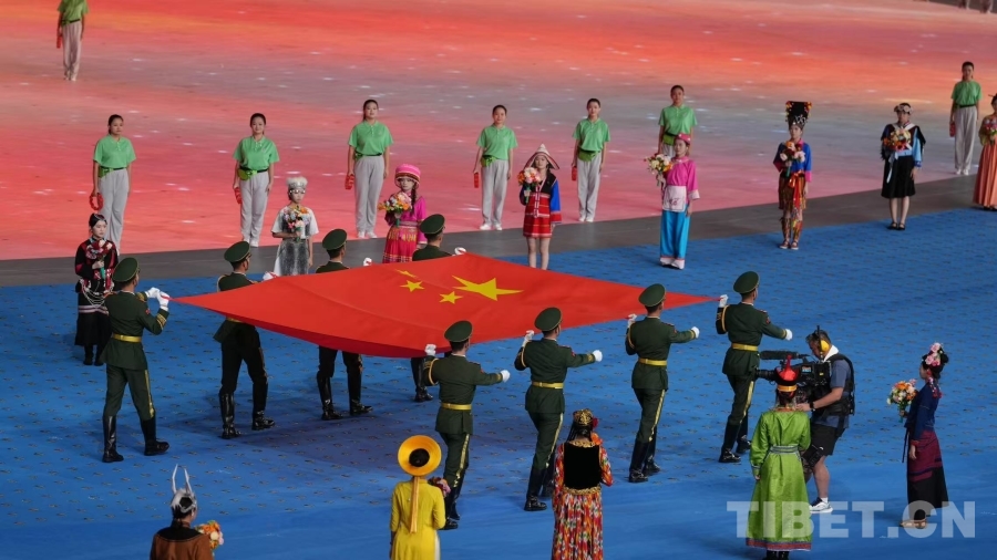 圖為中華人民共和國(guó)國(guó)旗在開幕式上入場(chǎng) 攝影:德吉卓瑪