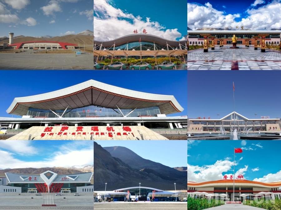 圖為西藏已建成投用的機(jī)場(拼版圖片)