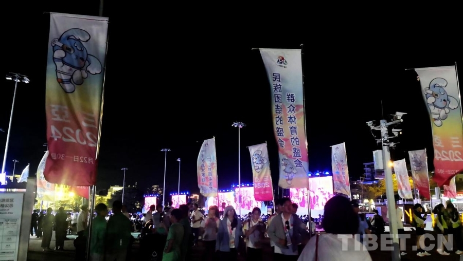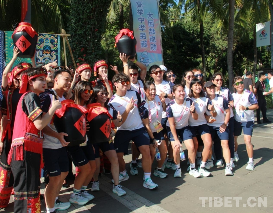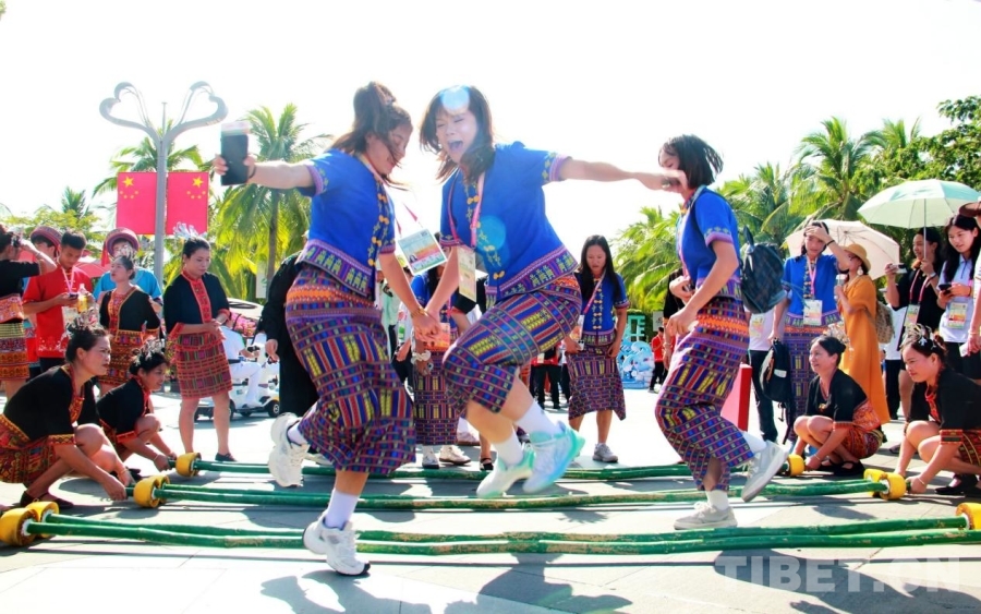 中國西藏網訊 11月26日,第十二屆全國少數(shù)民族傳統(tǒng)體育運動會民族大聯(lián)歡活動在海南省三亞市舉行?;顒訃@“民族大聯(lián)歡·天涯共此時”主題,分為歡迎儀式、游園部分、聯(lián)歡環(huán)節(jié)三個部分。其中,聯(lián)歡環(huán)節(jié)進行了由《心心相映》《山水相連》《熱情相擁》三個篇章組成的盛大文藝演出。(中國西藏網 記者/劉莉)