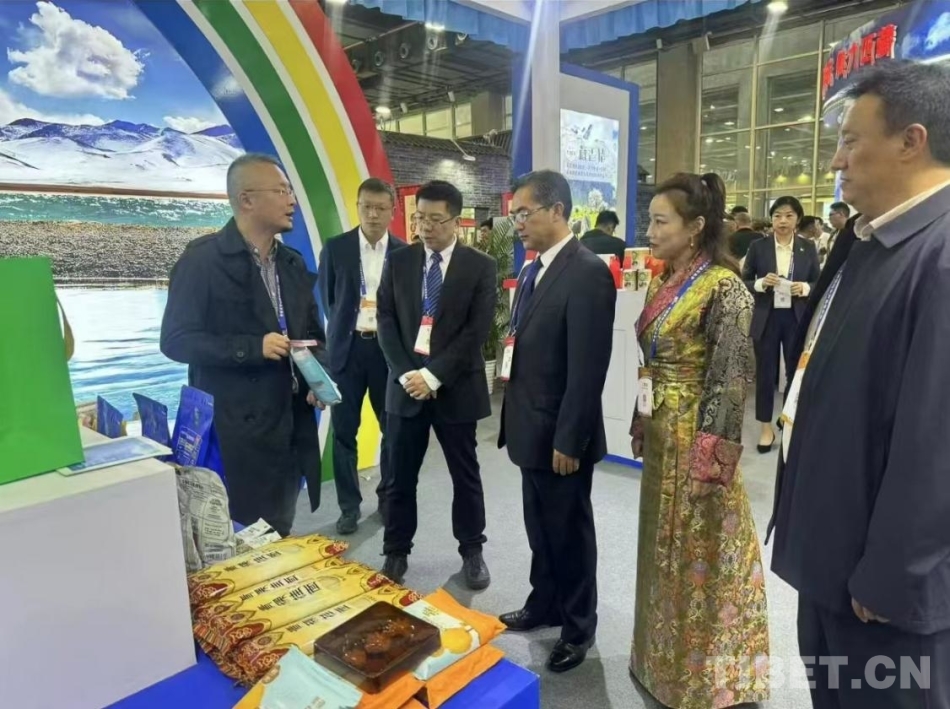 圖為農(nóng)交會上工作人員介紹西藏好物
