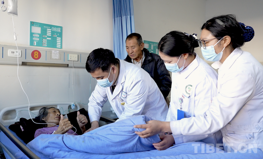 12月1日,若爾蓋縣人民醫(yī)院內(nèi),值班外科醫(yī)生仁青奪機(jī)正為一名患有膽囊結(jié)石的住院病人進(jìn)行常規(guī)病情摸查。談及就醫(yī)現(xiàn)狀,病人家屬澤讓甲很是感激:“很感謝這里的醫(yī)生,他們醫(yī)術(shù)很好,也很積極地進(jìn)行治療,而且現(xiàn)在我們也不用長(zhǎng)途跋涉地去看病了,很方便。”