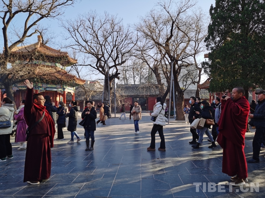 圖為西藏佛學(xué)院學(xué)員在雍和宮拍照留念